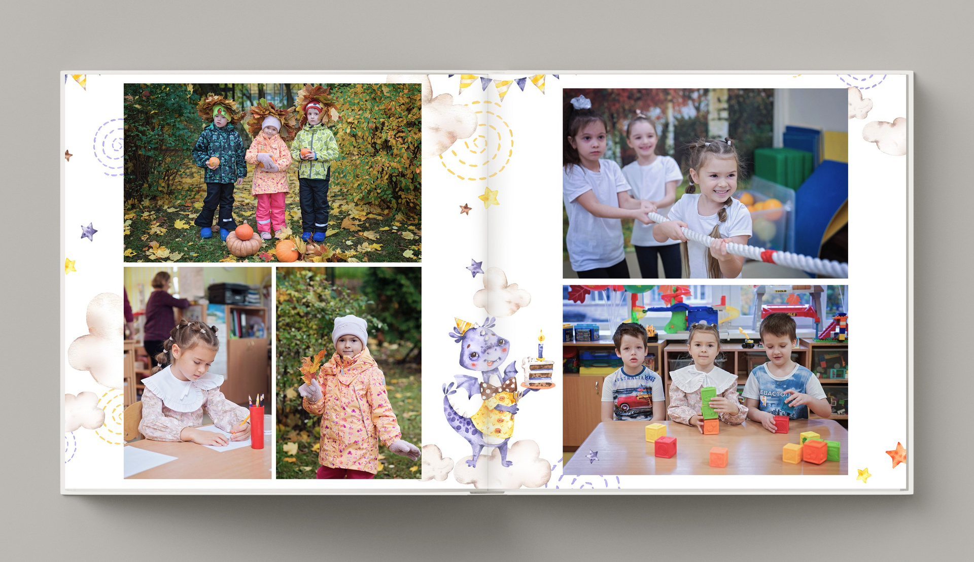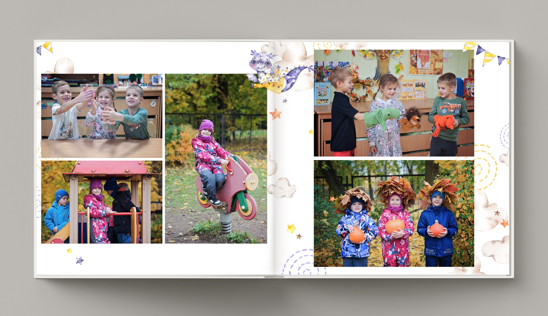 - разворот на 5 фотографий