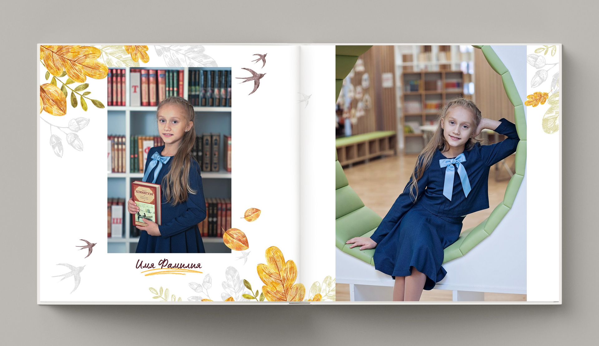 - разворот с портретом и одной большой фотографией